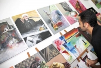 ll الوسط ll شاب يتأمل اللوحات المعروضة في المرسم الحسيني ضمن فعاليات موسم عاشوراء هذا العام في المنامة (( النعيم ))