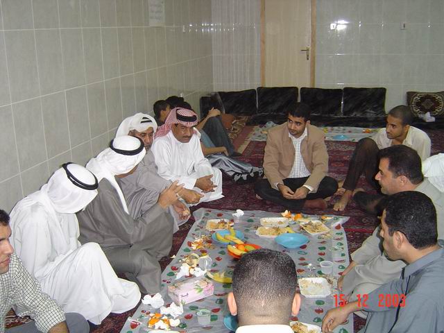 المدعوين يتناولون وجبة العشاء في صالة السيد حسين