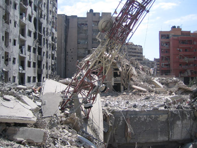 أنزل العدو جام غضبه على ما تبقى من جسور ومحطات الكهرباء والمصانع فقد دمر مصنع غندور وحولت أحياء في الضاحية الجنوبية إلى ركام. فكنا نسمع أصوات الانفجارات الهائلة طوال الليل وحتى موعد وقف إطلاق النار الساعة الثامنة صباحاً (يوم الاثنين) لم يوفر العدو دقيقة واحدة إلا واستهدف بها الجنوب والضاحية تعبيراً عن حقده وهمجيته ودليل ساطع على فشله في تحقيق انتصار على المقاومة التي ردته على أعقابه مندحراً يجر خزي وذل الهزيمة فأخذ يتأثر بطيرانه من المدنيين العزل. هذا هو العدو الصهيوني وهذه حقيقته. ونحن لم نوفر الوقت حيث كان شوقنا عارم لزيارة الضاحية والإطلاع على مدى الدمار الذي لحق بها. ففي صباح يوم الاثنين 14/8 توجهنا للضاحية، ويا لهول ما شاهدنا النيران ما زالت تشتعل في بعض الأبنية – الدخان كثيف، العمارات وقد تحولت إلى ركام، رائحة الدخان والجثث وغبار حطام الأبنية. نعبر من شارع إلى شارع فوق الركام في حارة حريك عمارات مهدومة وبعضها محترق وبعض العمارات نصفها مهدم والبعض محطم النوافذ والأبواب.