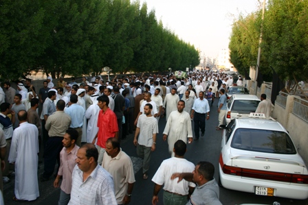 انطلقت المسيرة التي تقدمها جمع من كبار علماء البحرين وطلاب العلوم الدينية بالمنطقة والوجهاء والأعيان، انطلقت بعد الصلاة لتجوب شوارع النعيم غربا ووسطا حيث تم المرور على منزل الفقيد العزيز ثم شرقا وجنوبا لتنتهي في مقبرة النعيم حيث المثوى الأخير للفقيد الراحل. تغمد الله الفقيد بواسع رحمته وألهم محبيه الصبر والسلوان.