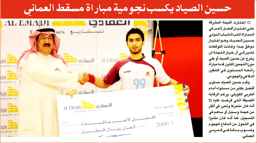 حسين الصياد يكسب نجومية مباراة مسقط العماني