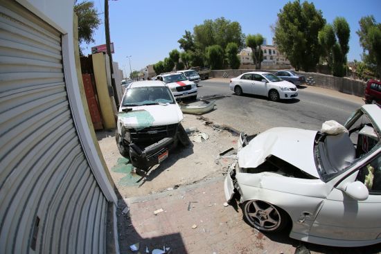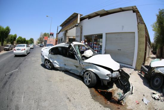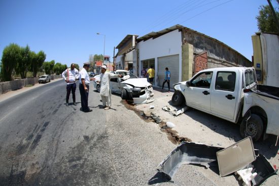تعرض شخصان أمس الخميس (7 أغسطس/ آب 2014) لإصابات متفرقة وذلك بعد أن صدمتهما سيارة بعد انحرافها إثر حادث تصادم بين مركبة أخرى بالقرب من مقبرة منطقة النعيم.