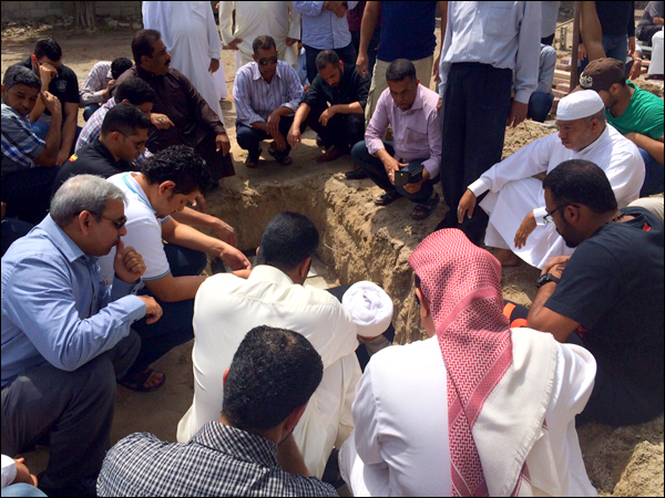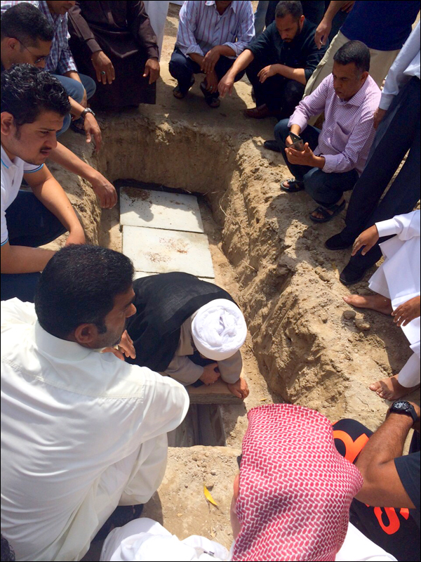 شيّع جمعٌ من أهالي النعيم الفقيد الحاج عبدالله حسن الإسكافي لمثواه الأخير بمقبرة النعيم وانطلق التشييع عند الساعة 10 صباحاً 24 / 3 / 2015م ،حيث لقنة وصلى عليه سماحة الشيخ محمد نوح وسوف تنعقد مجالس التعزية للرجال بمأتم النعيم الغربي وللنساء بماتم الشمالي - غرب المنطقة. هذا وتتقدم أسرة شبكة النعيم الثقافية بأحر التعازي لعائلة الفقيده السعيده، نسأل الله أن يتغمده بواسع رحمته وأن يسكنه الفسيح من جنته ، إنا لله وإنا إليه راجعون.ش